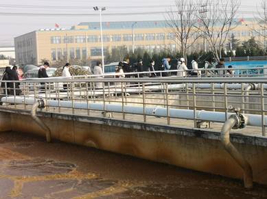 在污水处理厂,孙厂长与朱厂长首先详细介绍了污水的主要来源,及污水处理的整个运作流程,然后分别带学生逐级参观讲解污水处理的每个具体工艺环节,从格栅池到沉砂池,从氧化沟到二沉池,从污泥浓缩池到污泥生物处理。处理后的污泥可用于园林绿化,污水真正实现了变废为宝。两位厂长的讲解生动有趣,由浅及深,通过听讲解、看工艺、交流互动,学生对从书本上学到的城市污水处理知识产生了具体和形象的认识,在熟悉了城市污水处理流程工艺的同时,体会到了污水处理厂在循环经济发展、生态城市建设、日照可持续发展等方面做出的重要贡献。