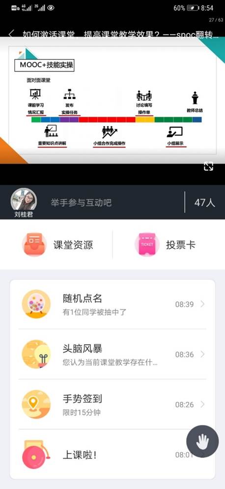 全体教师通过智慧树“知到”在线教学APP开展在线课程建设主题研讨。主要围绕“一流本科申报及评审政策解读”“混合式课程建设培训”“如何制作课程设计方案”“如何激活课堂,提高课堂教学效果?-spoc翻转工具”“铸金计划-如何打造一门金课?”“国家级虚拟仿真实验教学一流课程建设及应用”等课题进行了研讨、交流。
