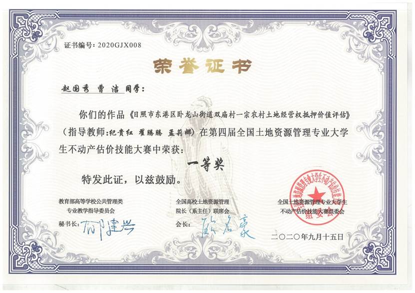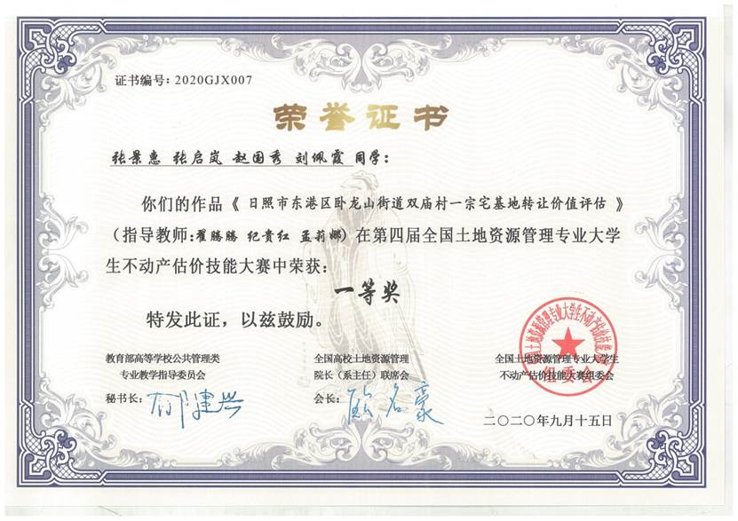 承办、日照市规划设计研究院集团有限公司、德恒土地房地产资产评估测绘(山东)有限公司、山东致远中信土地房地产评估咨询有限公司等单位协办的第四届全国大学生不动产估价技能大赛圆满结束。