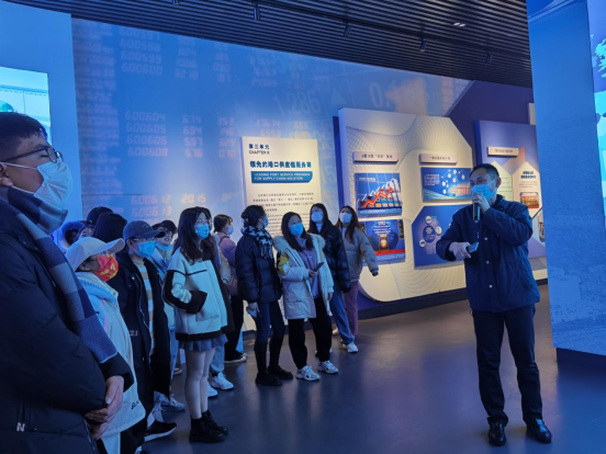 抵达日照港后,老师为同学们简单介绍了日照港的发展情况,引发同学们思考,为同学们的后续学习做了良好铺垫。随后,同学们跟随场馆讲解人员进入日照港展览馆。展览馆为四层钢结构建筑,设有四个展厅和休闲平台,四个展厅分别为“现代港口、党建专栏、历史回顾、改革开放”。同学们被馆内展厅恢弘的陈设所吸引,认真聆听讲解员的讲解,对日照港有了更加全面的了解。最后,同学们登上观景台,为日照港的壮阔所震撼,澄澈如洗的天空下忙碌的日照港给同学们留下了深刻的印象。