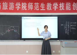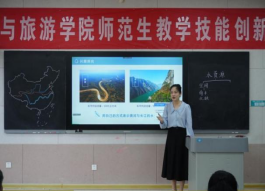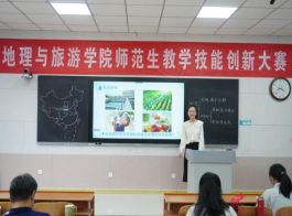比赛设置高中组和初中组两个组别,包括固定题目模拟授课、答辩和钢笔字考查三个环节,综合考查地理师范生教学技能。比赛过程中,42名地理师范生通过模拟授课和现场抽题作答进行激烈角逐。模拟授课环节,参赛选手以别出心裁的教学设计、丰富多样的教学方法,展现出较强的教学能力;现场抽题作答环节,参赛选手沉着冷静,清晰作答,展现出良好的个人素质。