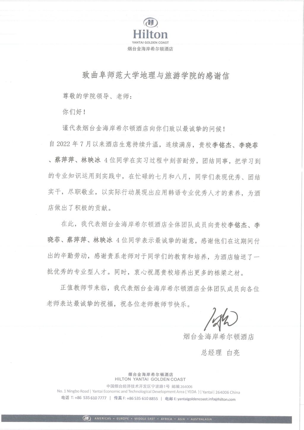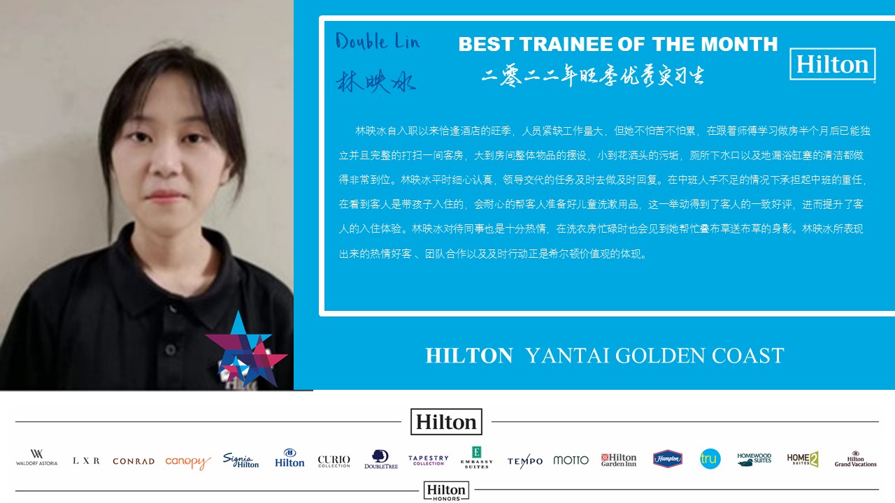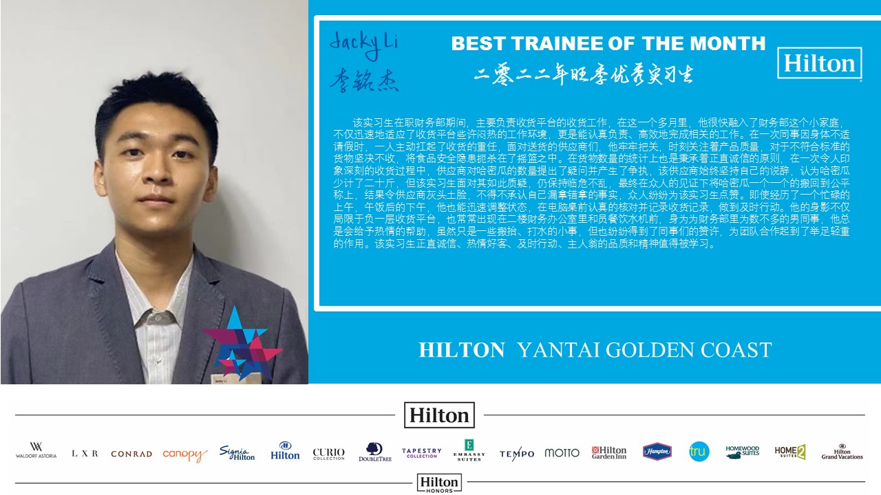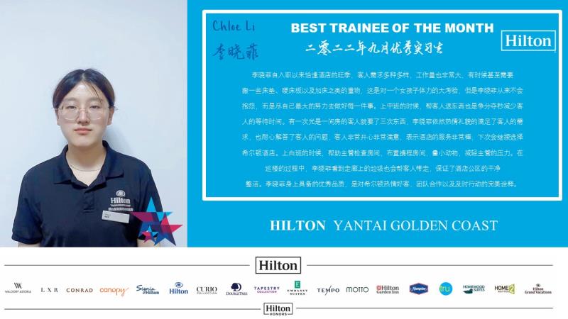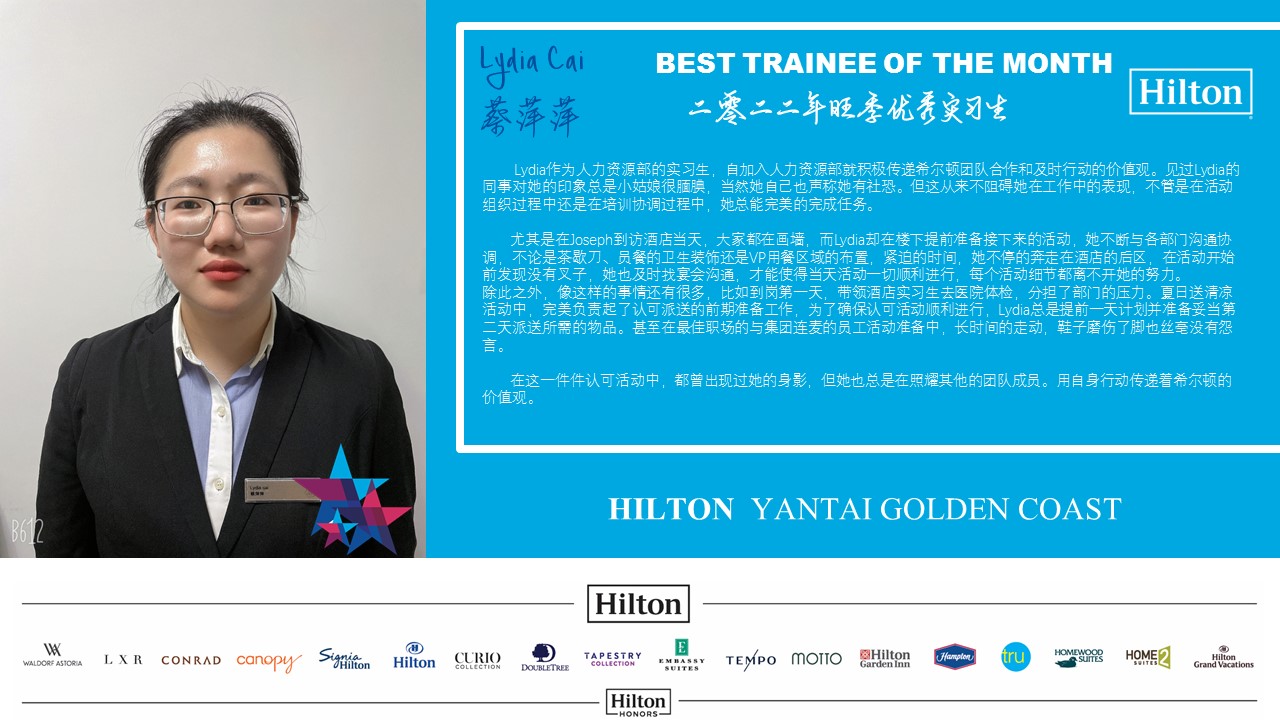 烟台金海岸希尔顿酒店:李铭杰、李晓菲、蔡萍萍、林映冰