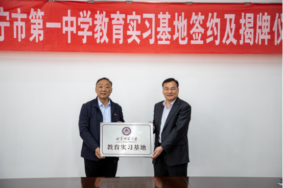 教育实习基地”授牌仪式。教育实习基地协议书的签订标志着双方正式开启了合作交流的新篇章。双方均表示,将围绕人才培养模式、教学资源共享等领域,发挥各自优势,拓宽合作领域,进一步开展全方位的深入合作。