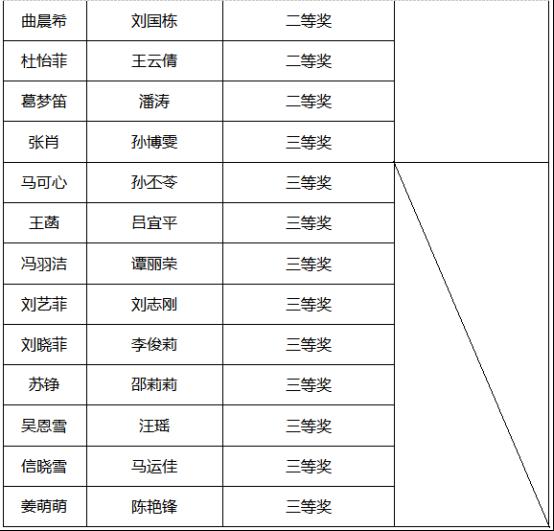 获奖名单(同一等级按照选手姓氏笔画排序)