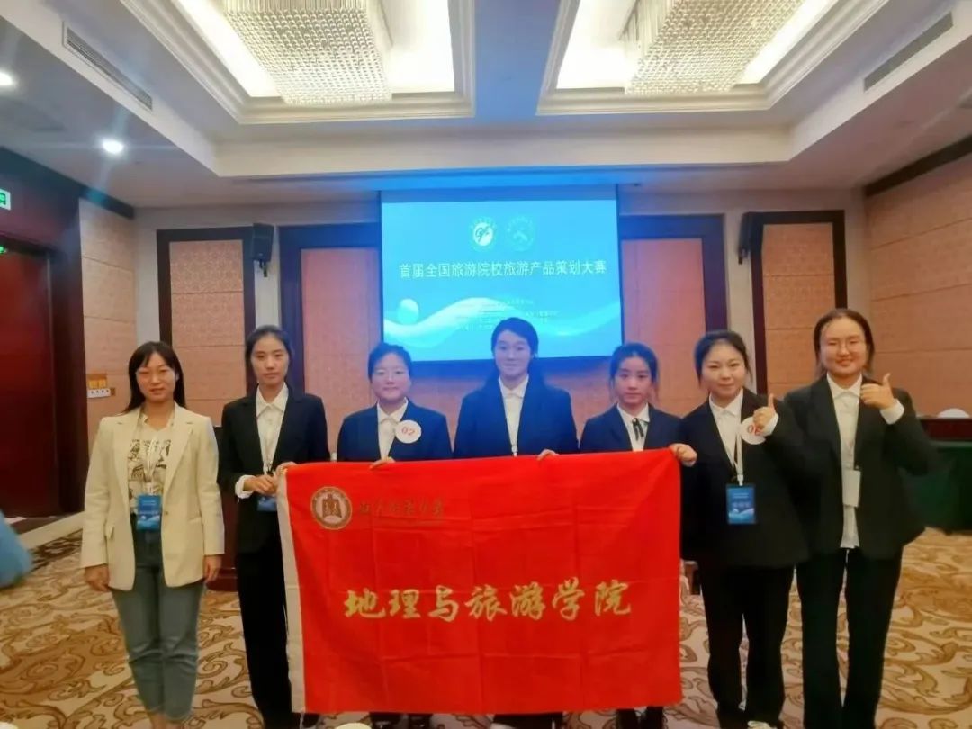 两支队伍入围,经过旅游产品现场策划、旅游产品宣讲与答辩等环节,分获一等奖和二等奖;四支队伍在初赛中荣获优秀奖,田青、陈锋、赵岩、张乃宁等4位老师分获最佳指导老师和优秀指导老师,学校获优秀组织院校奖。