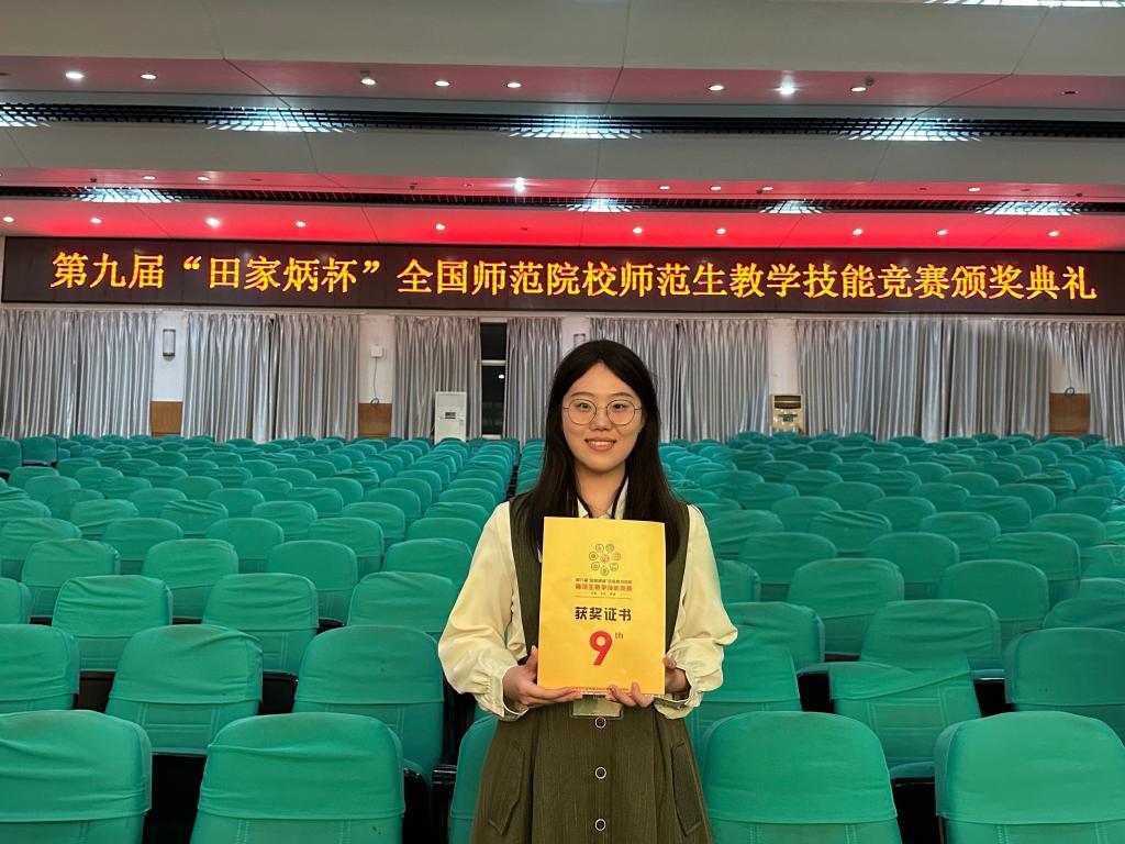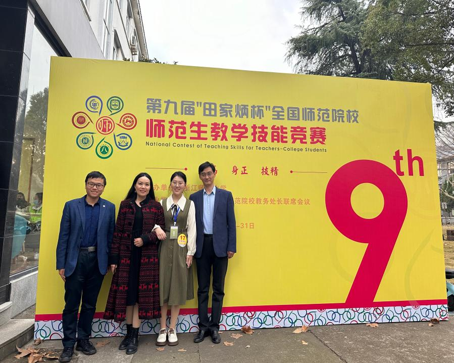 第九届全国师范院校师范生教学技能竞赛获得了“田家炳”基金会的冠名赞助,并由全国地方高等师范院校教务处长联席会议专业指导,浙江师范大学承办,是目前国内层次最高、规模最大的师范生学科技能竞赛,是纳入本科状态数据库填报的国家级竞赛项目。本届大赛经各高校校内选拔,来自哈尔滨师范大学、华东师范大学、重庆师范大学等226所学校,地理科学、思想政治教育、化学等11个专业的1611名选手参赛。经初赛选拔,来自全国150所师范院校的485名选手进入决赛。这些优秀学子们齐聚金华芙蓉峰下,展示风采,切磋技艺。其中,我校共计有5位同学进入决赛,经过激烈角逐,叶繁同学最终以精湛的专业理论、精巧的授课技法、精心的教学设计成功获得一等奖的优异成绩。