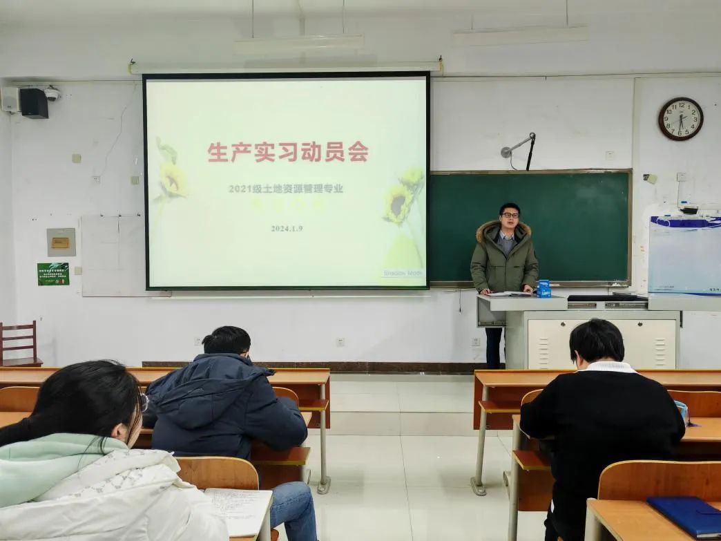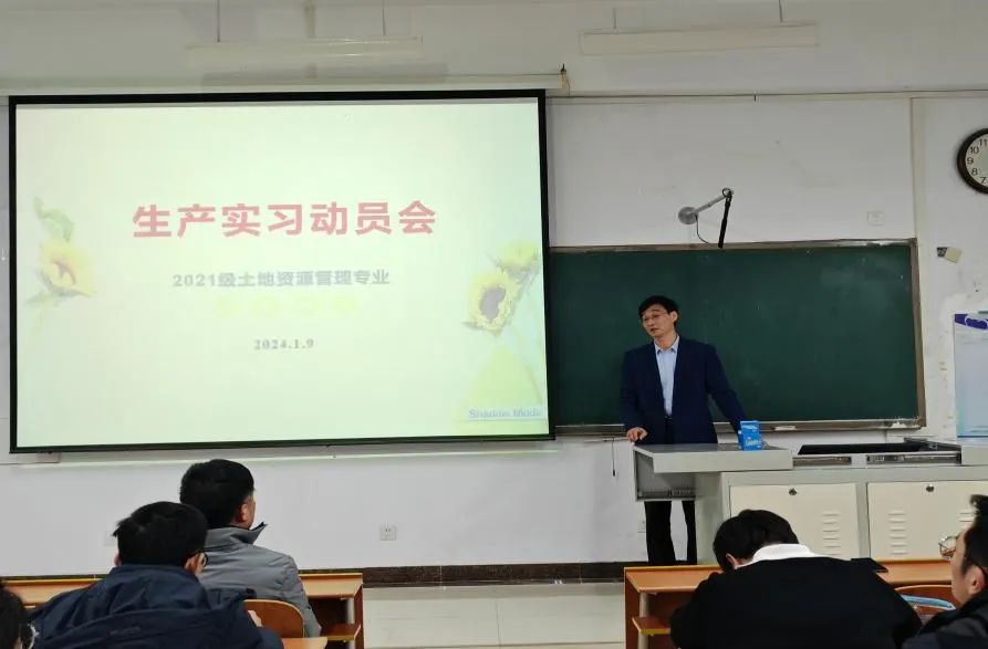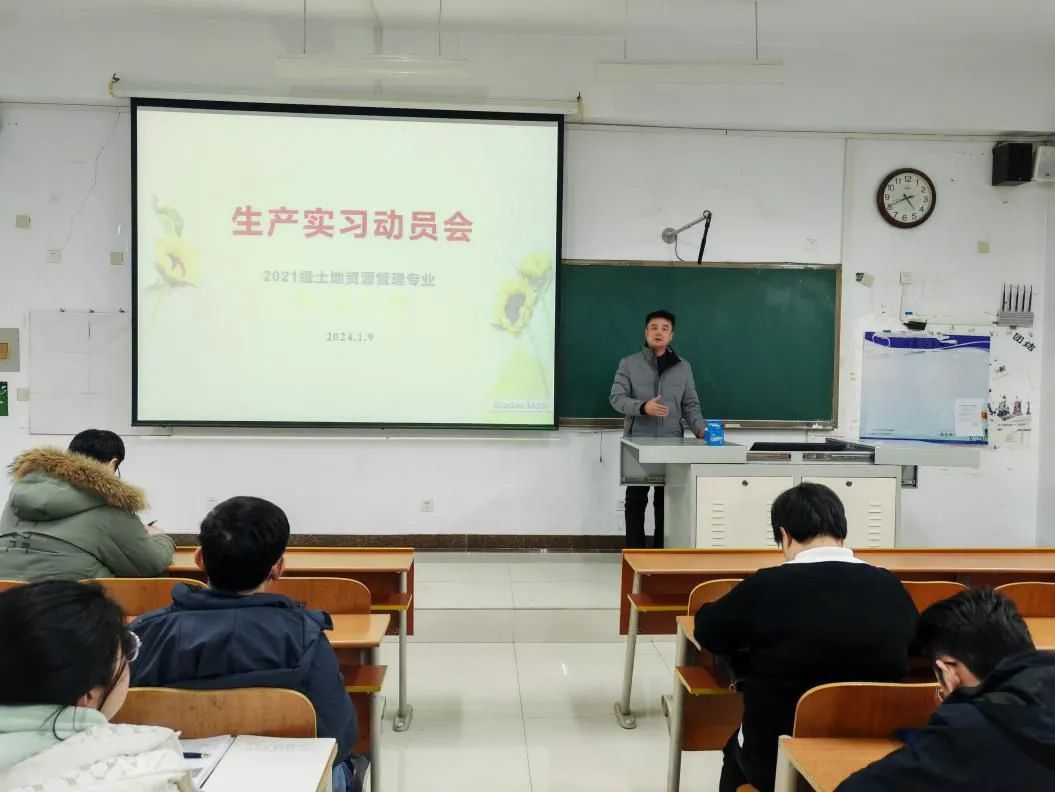 于1月9日召开2021级土地资源管理专业生产实习动员会。学院党委副书记刘伟、副院长吴军、土地管理系全体老师及辅导员田青出席,2021级土地资源管理专业全体同学参加。土地管理教研室主任王萍主持动员会。