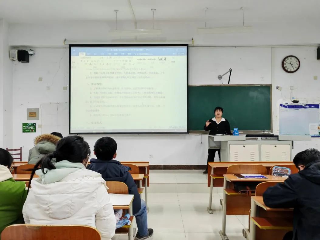 王萍详细讲解了本次实习的内容要求、时间安排、考核方式和成绩评定;结合往年实习中常见的问题,介绍了问题处理的方法与技巧。她希望同学们谨记实习目标,团结协作、加强交流,共同实现本次实习的圆满成功。