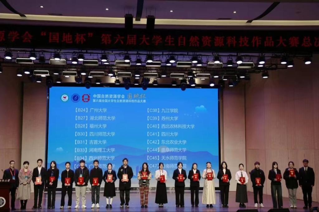 2024年10月25-26日,由中国自然资源学会主办的中国自然资源学会“国地杯”第六届全国大学生自然资源科技作品大赛决赛于西北师范大学成功落下帷幕。本届大赛以“锚定自然资源科技创新 蓄势赋能新质生产力”为主题,共收到有效作品196份,经过大赛评审组的层层遴选、优中选优,最终确定68项作品入围决赛,32项作品授予优秀作品奖。