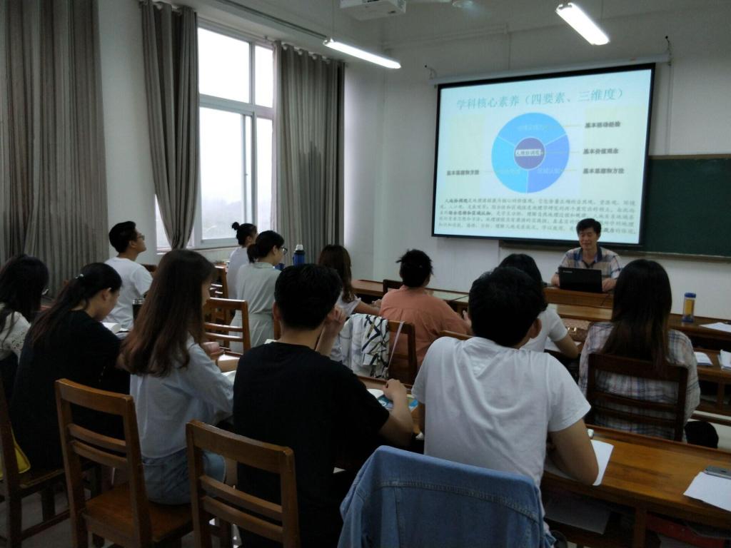 交流过程中,徐伟老师从教学设计和教学路径两个方面进行了学术报告。首先就教学设计做了分析,徐老师指出教学目标设计要明确教什么、学什么,教学过程设计要知道怎样教、如何学,教学反馈设计不仅要明晰教的怎样还要弄懂学的怎样,原理设计中要阐述清楚为什么这样教为什么这样学,对于教学意义预设一定要拿准这样教和学的意义何在。然后,徐老师就教学路径阐述了自己看法。徐老师认为,教学路径的四个阶段依次是为何教(培养核心素养)、何程度(深度学习的评价)、怎样教(让学生深度学习)和教什么(基于课程标准)。最后,徐老师对研究生同学们提了几点希望:在教学过程中一定要秉持理念引领设计方向、目标控制教学程序、重点难点把握主线、情境承载设计过程和技术支持呈现方式。