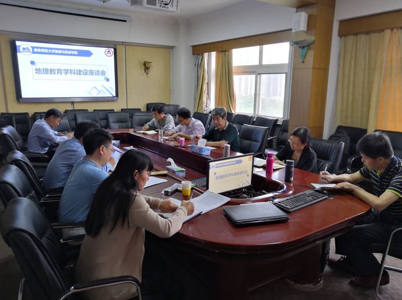 地理教育学科建设座谈会于会馆2401会议室顺利举行。东北师范大学地理科学学院袁孝亭教授作为座谈嘉宾出席。院长张全景教授主持座谈会,学院党委书记苏占兵、研究生秘书赵岩以及廉丽姝、吕宜平等地理课程与教学论、学科教学(地理)专业全体硕士生导师共20余人参加,共同就地理课程与教学论专业和学科教学(地理)专业研究生培养问题进行了深入交流与讨论。