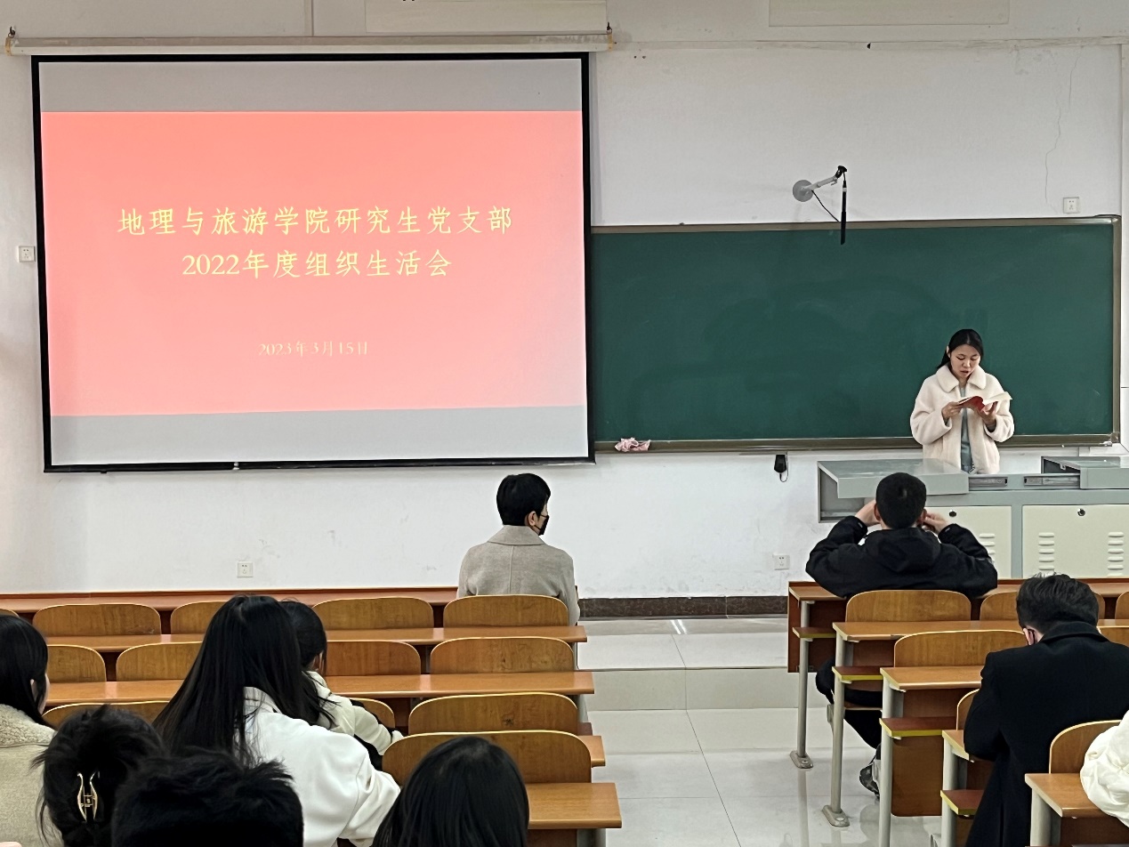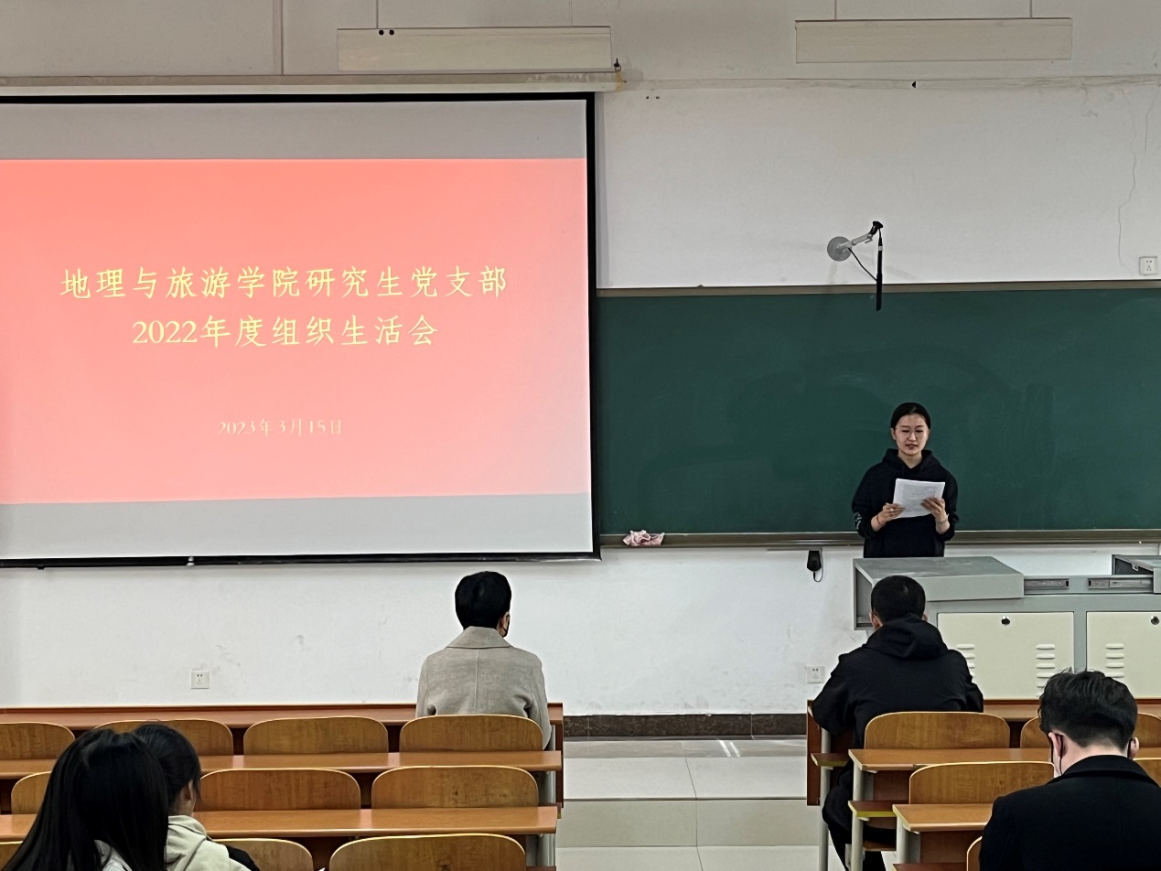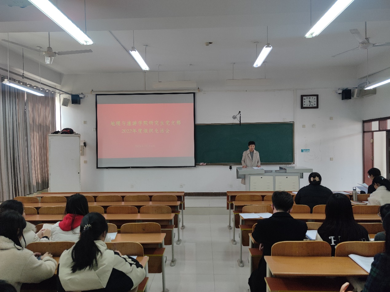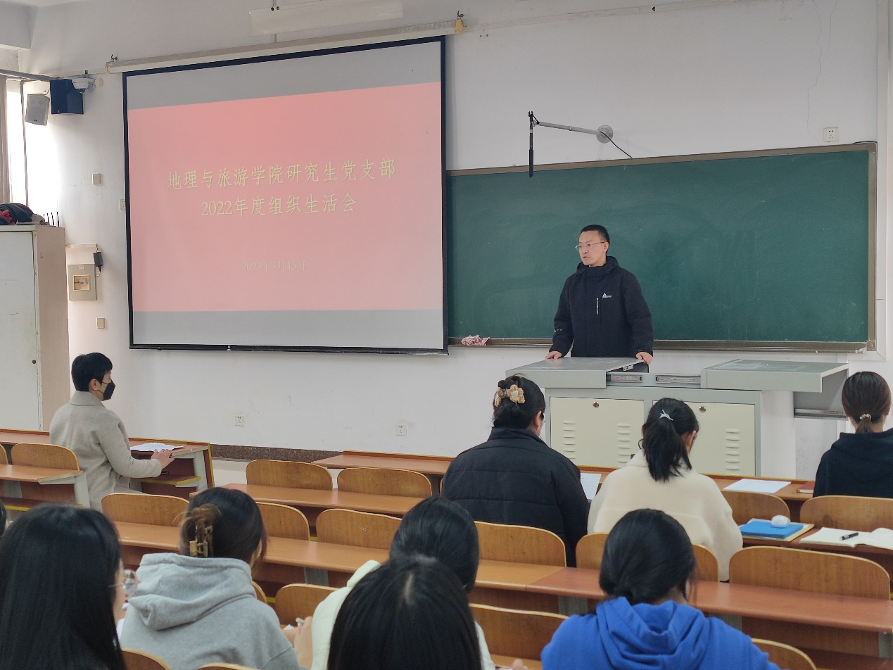 研究生党支部在S413教室召开2022年度组织生活会。本次会议由研究生党支部书记吕潇雨同志主持,学院党委委员于伟老师列席会议并现场指导点评,支部全体党员参加会议。