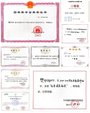 团委副书记、2020级地理学研究生团支部书记。以第一作者的身份发表论文2篇,多次参加社会实践和支教活动,先后获得国家奖学金、优秀毕业生,优秀研究生干部、优秀团员标兵等荣誉称号。2023年考入中国科学院地理科学与资源研究所攻读自然地理学博士学位。