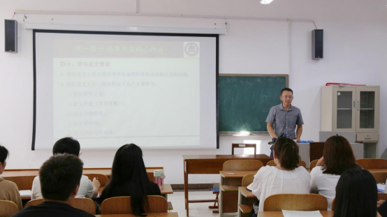 会上,于伟教授主要从培养方案核心内容、相关科研制度要求、攻读硕士学位建议三个方面进行讲解,专门针对核心内容中培养目标、培养方式、学习年限、课程设置、学分要求、实践活动、学术活动、学位论文要求等方面对各专业研究生培养方案展开了详细解读。他指出,研究生阶段的学习要尽可能培养自己的研究能力,用高质量的研究来支撑高质量的论文,既要掌握扎实的专业理论知识,也要保持身心健康和积极乐观的心态,鼓励同学们在研究生期间尽早有目标、有方向地进行职业规划。