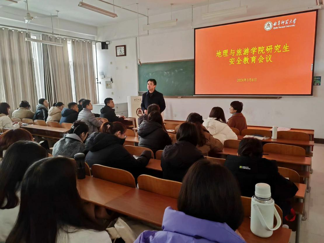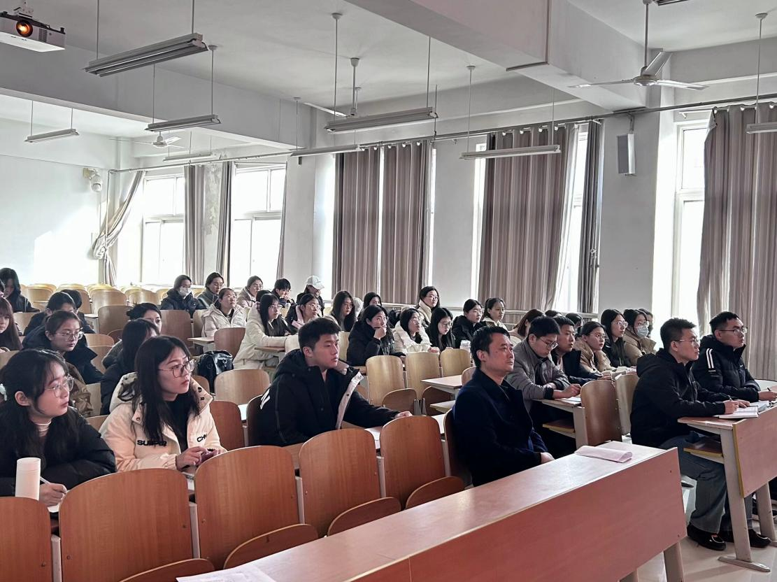 于S413教室召开研究生安全教育主题会议。学院党委副书记刘伟、研究生辅导员赵岩、全体研究生会成员以及各班班委参加会议。