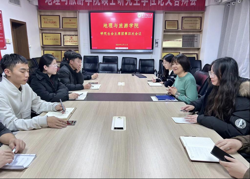 于会馆2401召开2025届研究生会第四次例会。研究生辅导员赵岩老师、2025届研究生会主席团全体成员参加会议。会议由研究生会主席杭庆厚主持。
