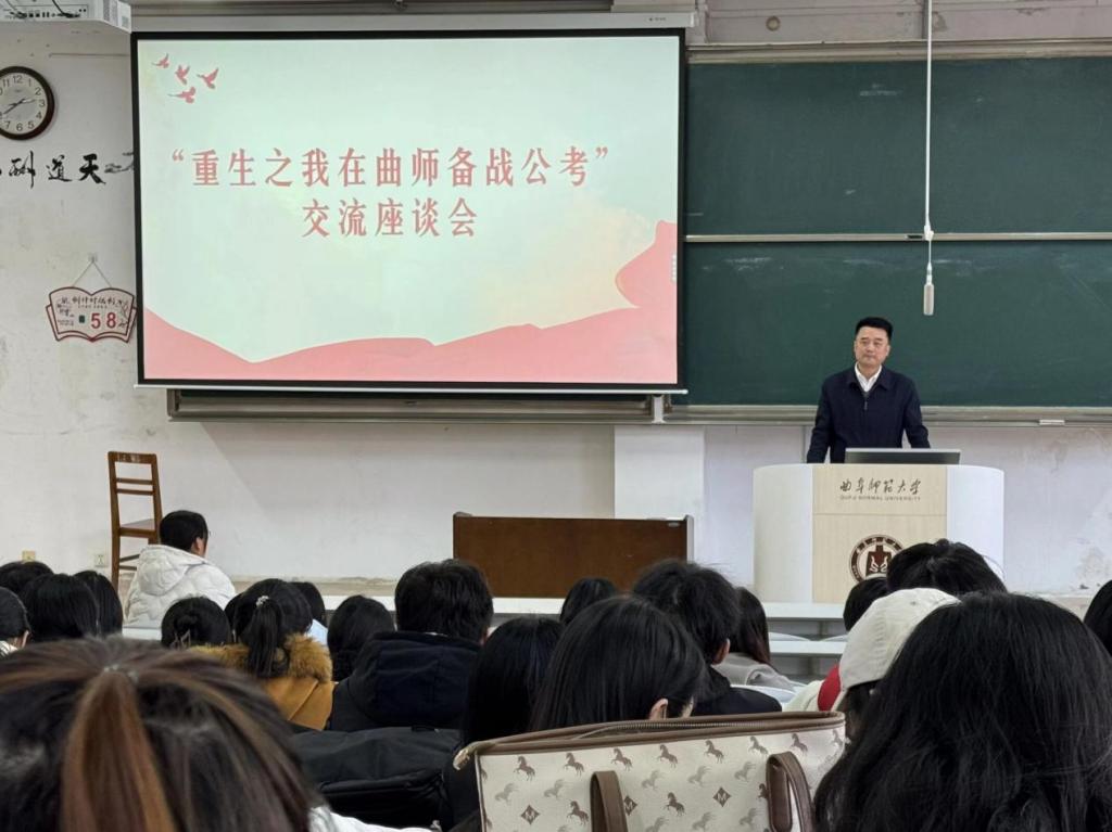 讲座上,刘伟书记深入分析当前地理学科就业形势。他指出,受人口变化及高考中考改革的影响,教师岗位数量收缩明显,考公、考编作为地理专业毕业生的主要就业渠道面临巨大压力。面对新形势,刘伟书记鼓励同学们树立信心,积极利用学院资源,提前做好职业规划,学院也将持续为大家提供全方位支持。新途径职教的专家围绕公考备考策略展开分享,详细拆解了行测、申论等科目的复习阶段规划,提醒应届生把握身份优势、提早做出准备、保持专注,此外他还向同学们分享了部分免费学习资源,为后续备考提供实用参考。