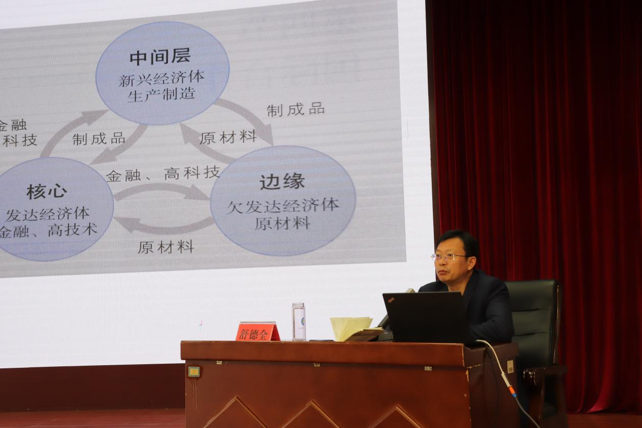 地理科学系系主任周维国老师受邀参加研讨会,学院学科教学(地理)专业研究生与2021级地理科学(师范)本科生参加研讨会,日照市东港区教体局教育科研与教师发展中心主任助理、正高级教师马锋主持研讨会。