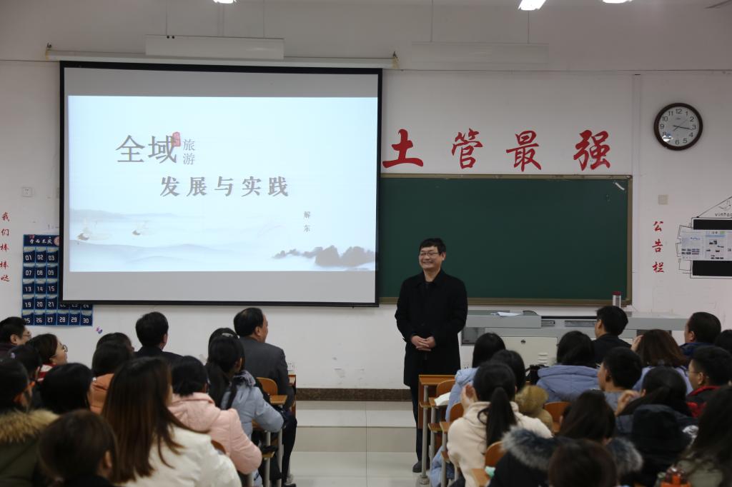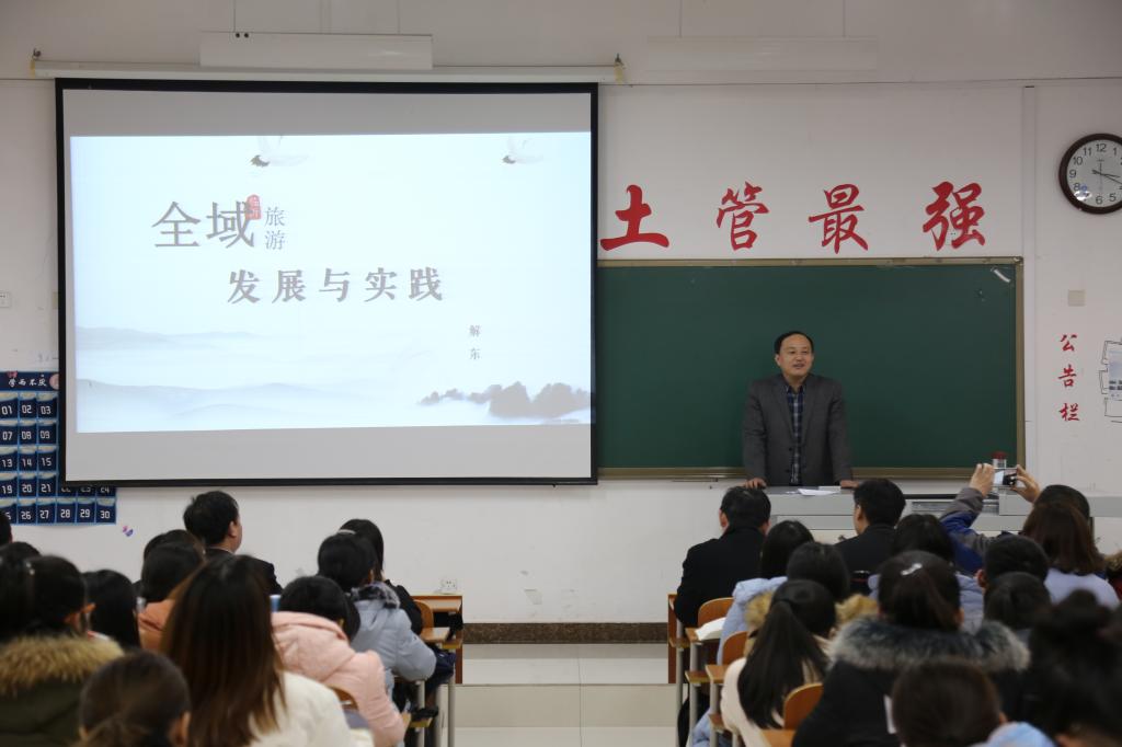 12月13日,电影天堂 “经纬讲堂”高端论坛系列报告——“全域旅游发展与实践”学术报告会成功举办。本次报告由临沂市旅游发展委员会主任、我校MTA研究生导师、我校兼职教授解东先生担任主讲人。报告会由电影天堂 院长张全景教授主持。
