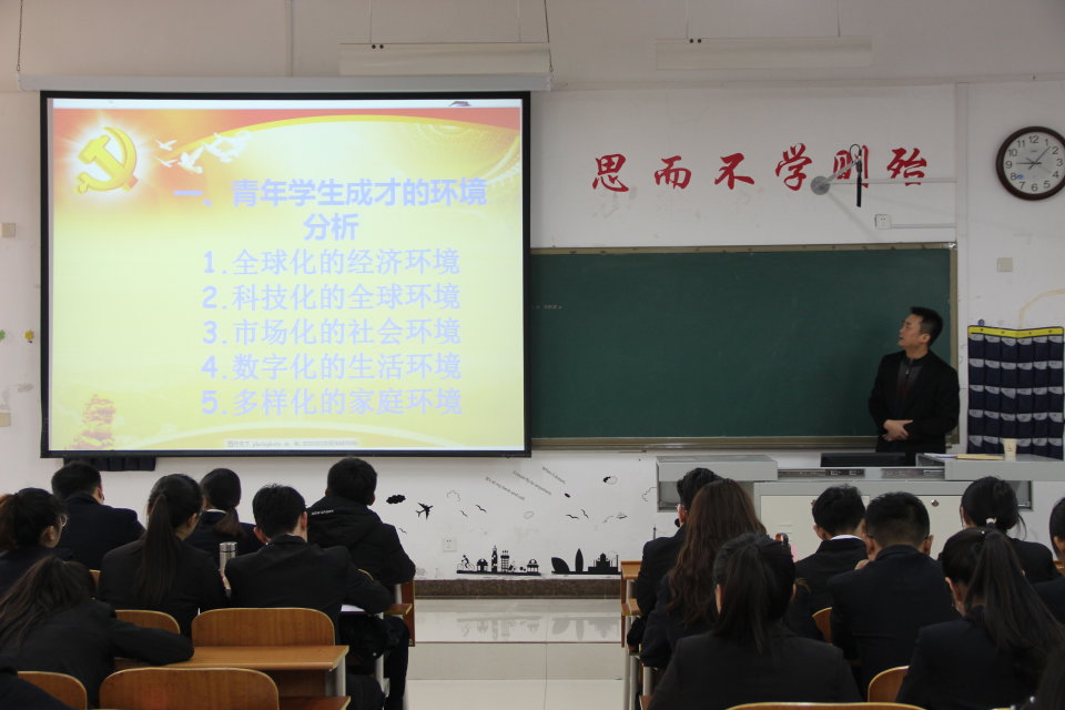 “时代的责任赋予青年,时代的光荣属于青年”,刘书记对当代青年学生思想上的“四个不协调”和思想状况的“四个更加”现象加以分析,并从个人修养、职业能力、集体利益与人生价值四个方面阐明了大学生成才路径应具备的品格和精神。最后,他系统地向同学们讲述了新的历史时代赋予当代大学生的历史使命,他希望同学们把握好时代机遇,做时代的弄潮儿,努力把自己造就成新时代的栋梁之才。