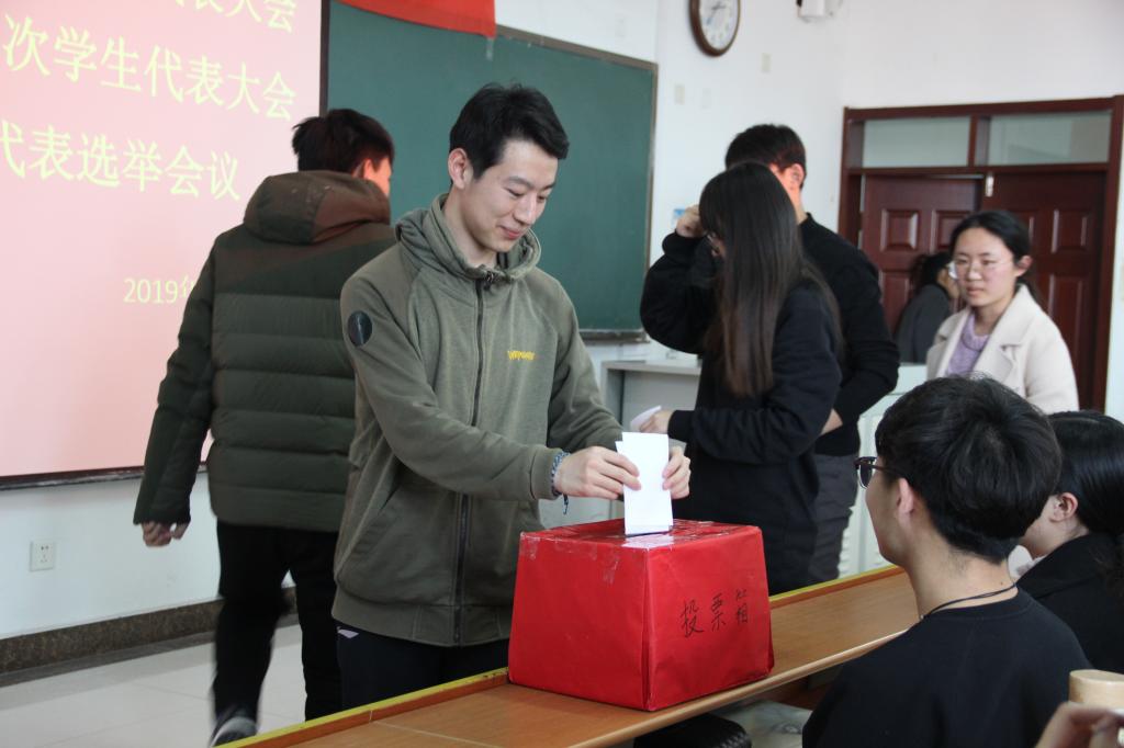 会上,宁晓文代表学院团委致辞,并对此次学代会的召开表示热烈祝贺,她指出,本次大会的主要任务是本着公平、公正、公开的原则,选举出学院代表。随后,刘翔宣读学生代表预备人选产生情况,以及学校团委给予的预备人选的批复。大会审议通过确认监票人、计票人名单;另外,宁晓文向同学们介绍了填票说明、注意事项及投票方法并发放选票,由各代表逐一进行投票;监票人、计票人开箱清点选票、统计选票。经过各个严密的环节后,大会最终选举出电影天堂