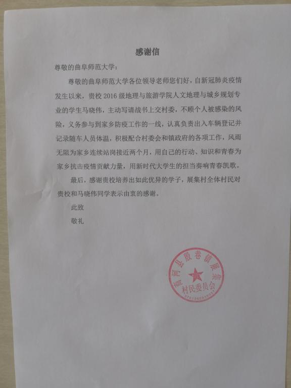 马晓伟同学积极奉献、无私无畏、勇于承担的行为和精神,践行了一名共产党员的初心和使命,充分展现出曲园学子的担当,为众多学子树立榜样。