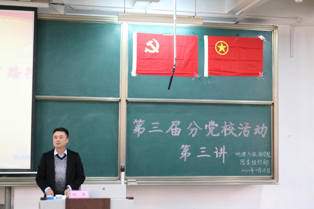 党委副书记刘伟主讲,本科生党支部书记宁晓文主持,2018级、2019级入党积极分子及2020级积极向党组织靠拢的同学参加。