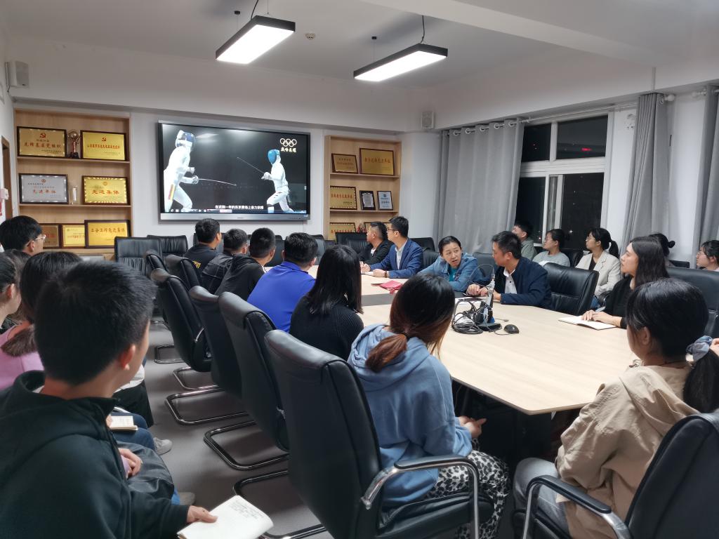 本科生党支部专题学习“灯塔大课堂”第二十四课《巅峰荣耀——“齐鲁奥运健儿风采”》。学院党委副书记刘伟及本科生党支部全体成员参加学习。