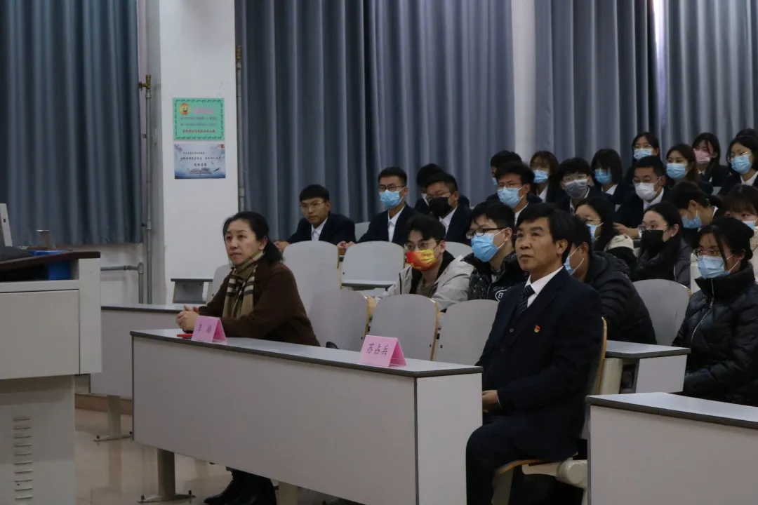 党委书记苏占兵主讲,2019级辅导员老师李梅主持,2020级入党积极分子及2021级班委参加。