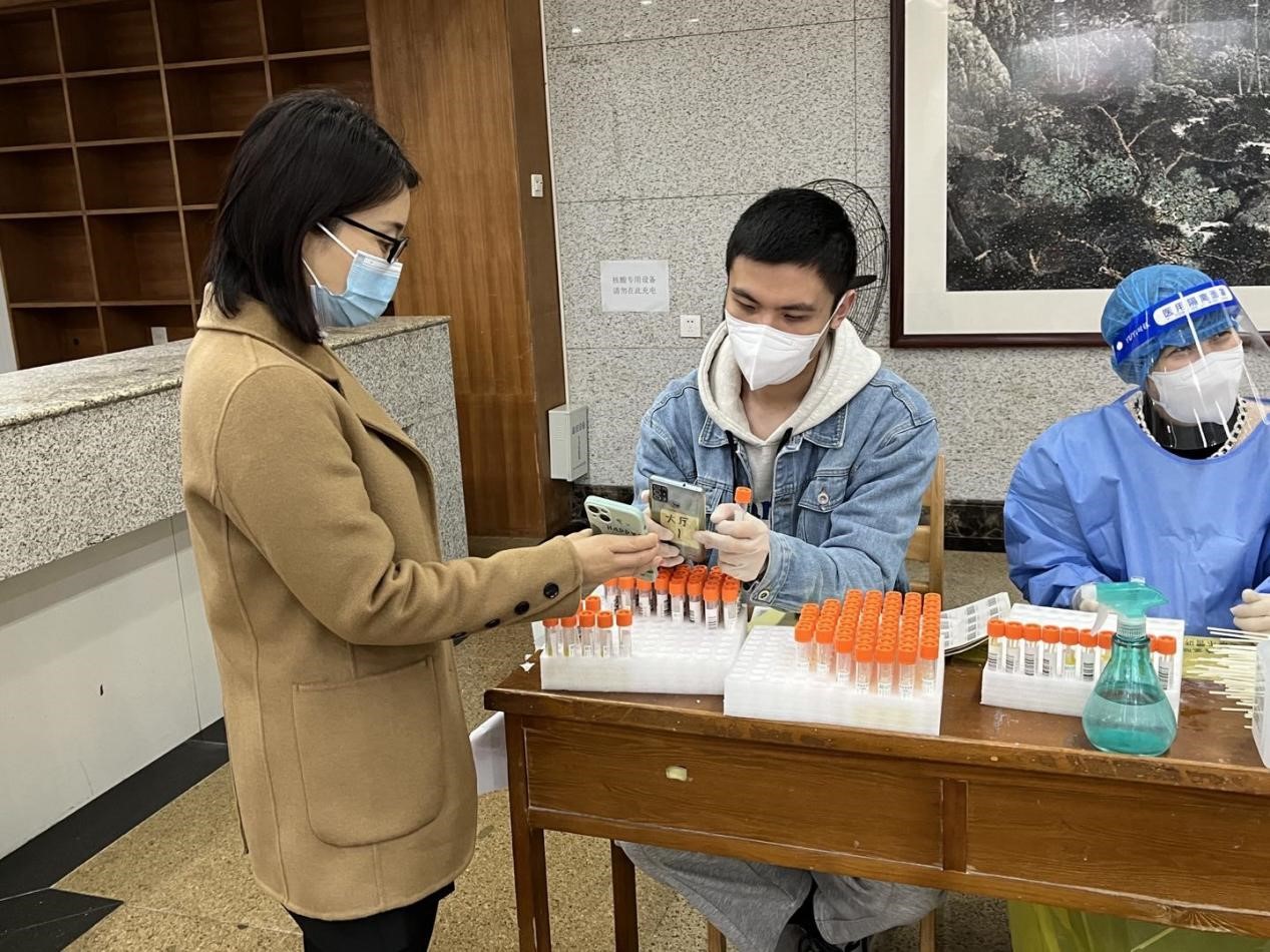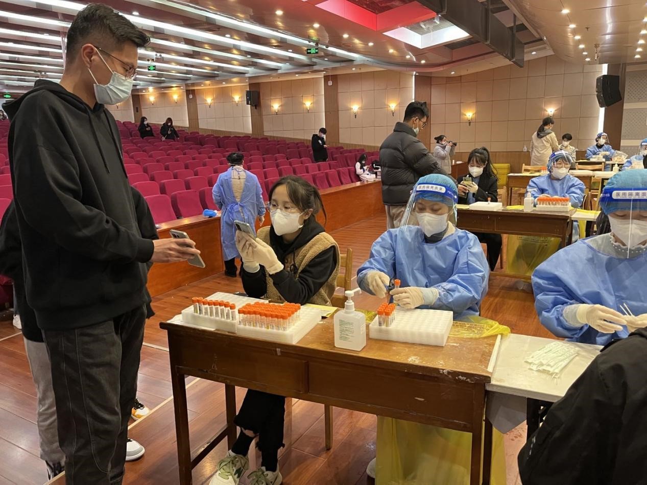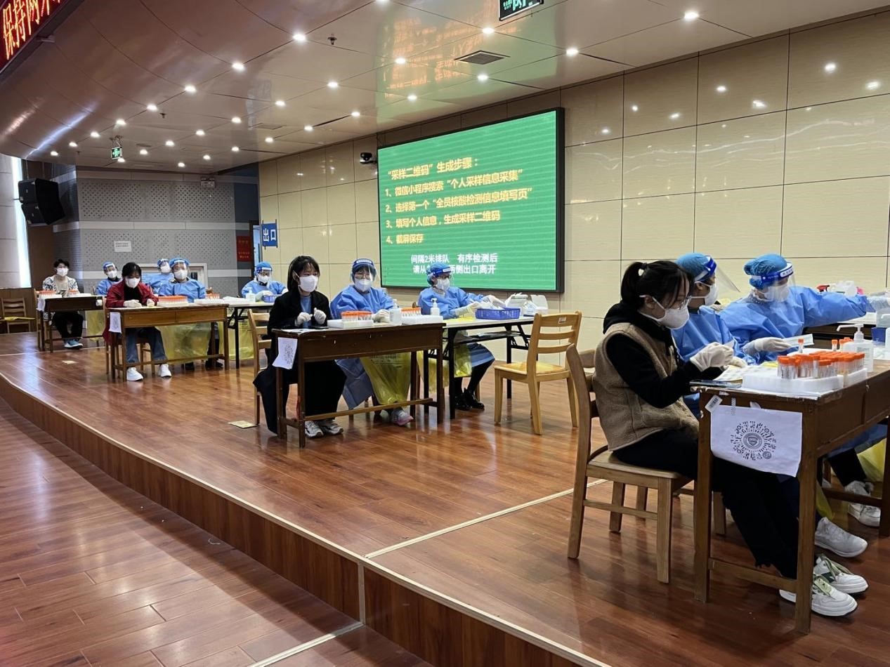 核酸检测开始前,志愿者们早已集结完毕,在做好自身防护的前提下,协助专业医疗人员分装试管、采样棒、条形码,以提高核酸检测的效率。看似轻松的工作,同样需要付出细心和耐心,同样需要默契与协作,他们无私奉献,为高效的核酸进行打下了良好的基础。在每一条核酸检测点的队伍旁,志愿者穿梭在各个核酸点位间,及时提醒同学们戴好口罩、保持一米线距离,维持队伍秩序。无论是信息登记、防疫宣传,处处都有地理学子的身影,他们在不同的工作岗位上为学校疫情防控工作的顺利开展贡献着自己的青春力量,用实际行动诠释者新时代青年的责任与担当,他们是朝气蓬勃的先锋队、是新时代青年的模范。