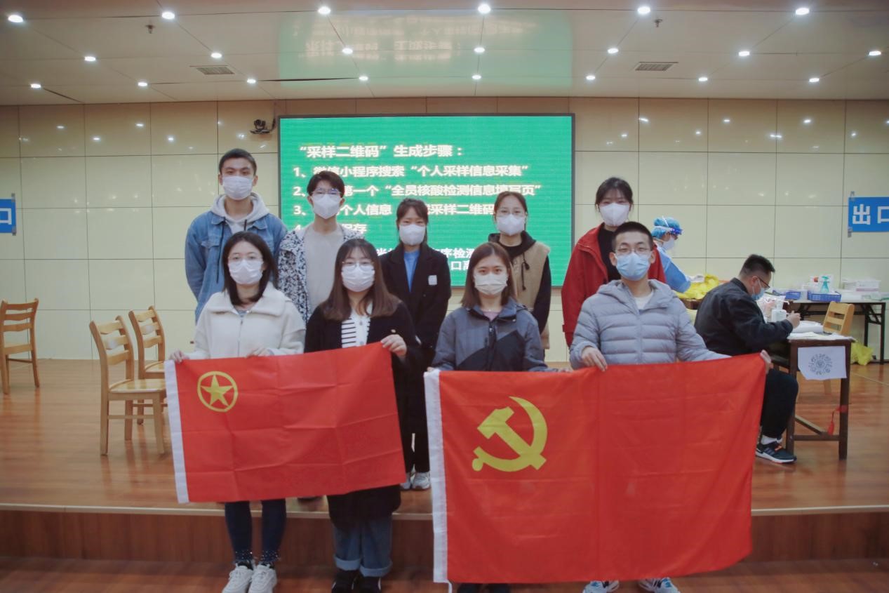 研究生党员志愿服务队献身防疫工作,冲锋在前,争做疫情防控的“战斗者”,让党旗在疫情防控一线高高飘扬,与战“疫”同行。