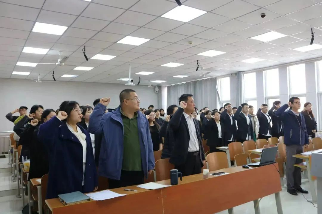 本科生党支部召开预备党员转正大会。学院党委副书记刘伟出席,党支部书记田青主持,全体党员参加会议。