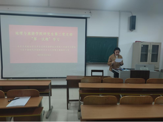 研究生第三党支部学习贯彻习近平新时代中国特色社会主义思想主题教育学习计划》。她强调,大家要坚持“学、做、改”相结合,始终把“改”字贯穿始终,确保主题教育往深里走、往心里走、往实里走,从严从实推动主题教育取得实实在在的效果,激励全体党员勇担立德树人光荣使命,为研究生第三党支部发展注入新的动能和活力,为建设世界知名的高水平孔子家乡大学贡献力量。