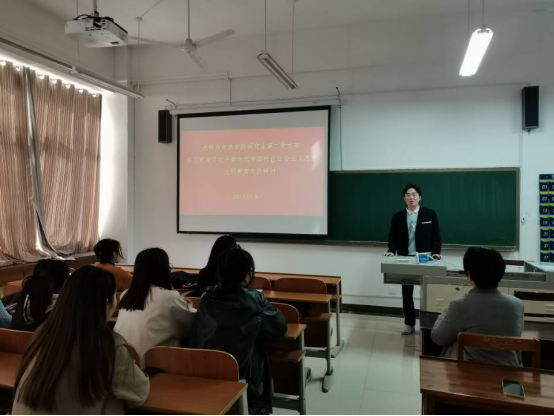 研究生第二党支部在S412教室召开“学习贯彻习近平新时代中国特色社会主义思想主题教育”党日活动。本次活动由魏正通同志主持,支部全体党员参加。