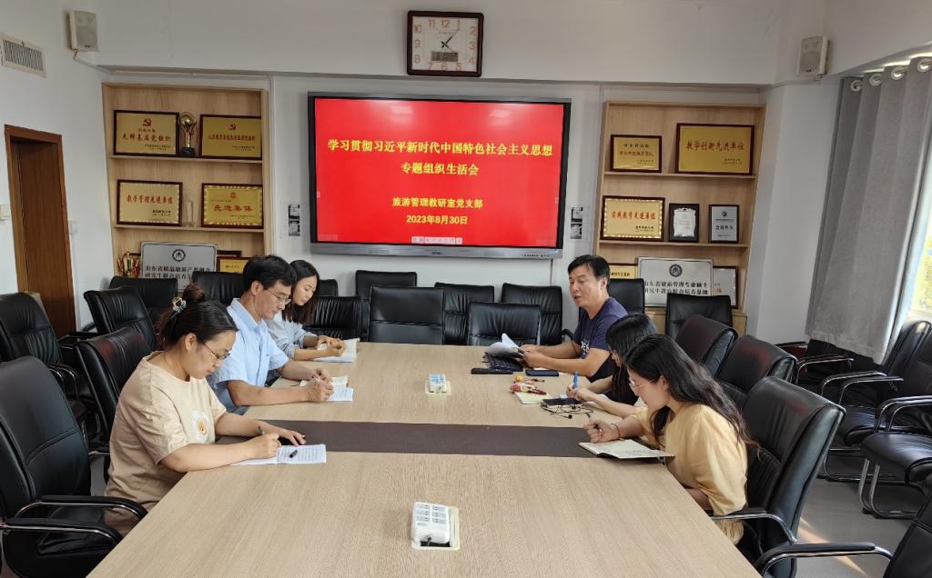 8月30日,旅游管理教研室党支部在会馆2301召开学习贯彻习近平新时代中国特色社会主义思想主题教育专题组织生活会。学院党委委员、副院长吴军到会指导,党支部书记石峰主持会议。
