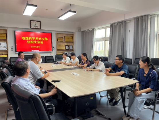 2023年9月5日,地理科学系党支部在会馆2401会议室召开组织生活会,会议紧扣学习贯彻习近平新时代中国特色社会主义思想主题教育专题组织生活会要求,聚焦“学思想、强党性、重实践、建新功”总要求,紧密联系工作实际,检视问题,开展批评与自我批评,地理科学系党支部9位党员参加会议,党支部书记王云倩主持会议。