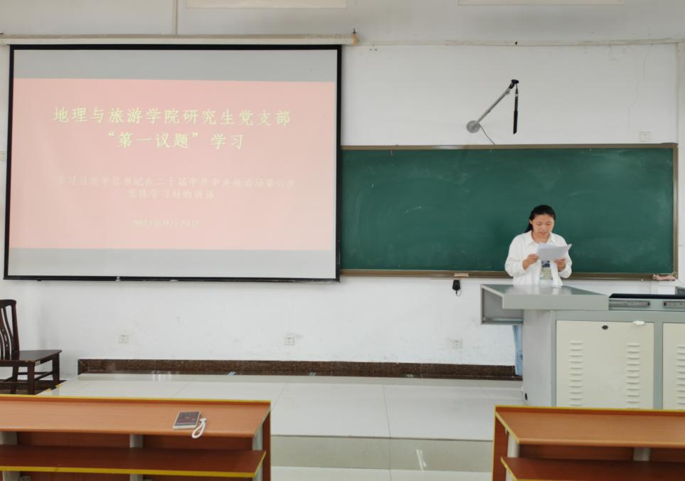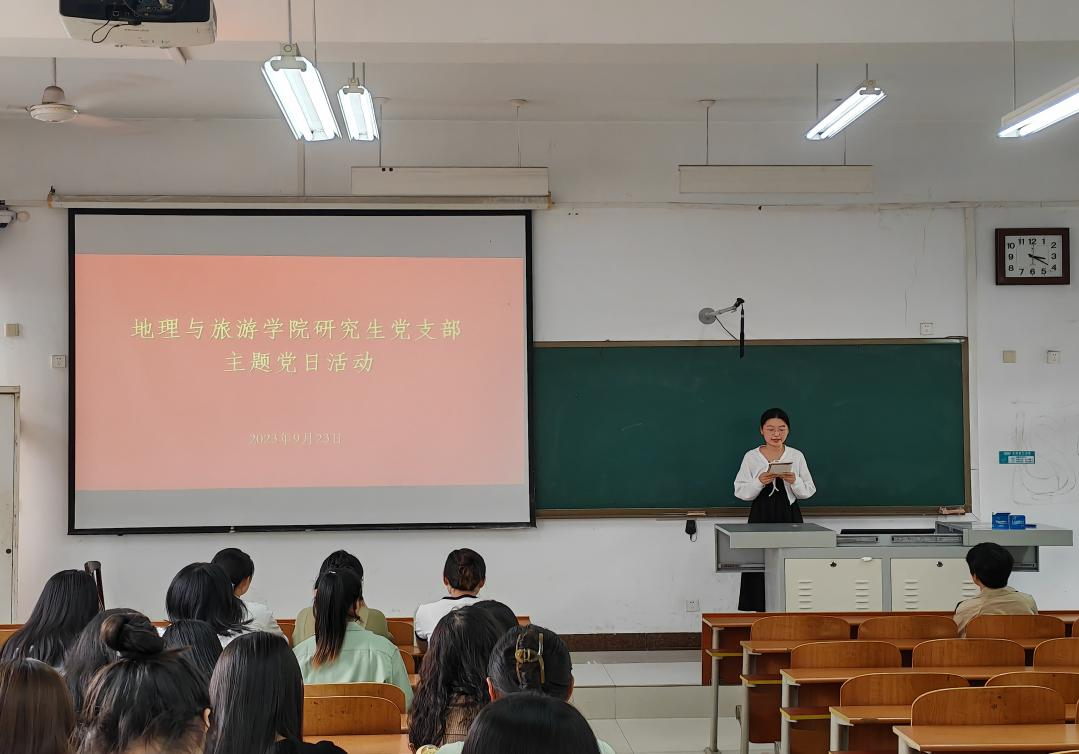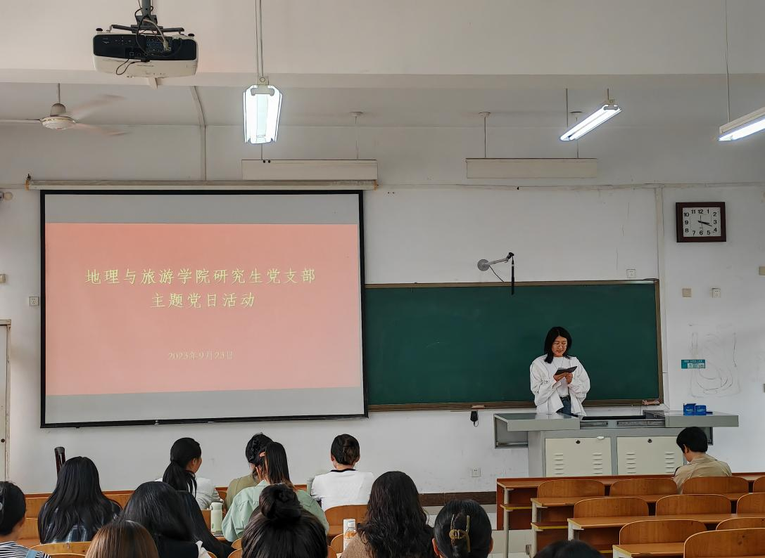 研究生各党支部在S413教室联合召开学习贯彻习近平新时代中国特色社会主义思想主题党日活动,会议由第三党支部书记徐佳蓓主持,研究生全体党员参加会议。