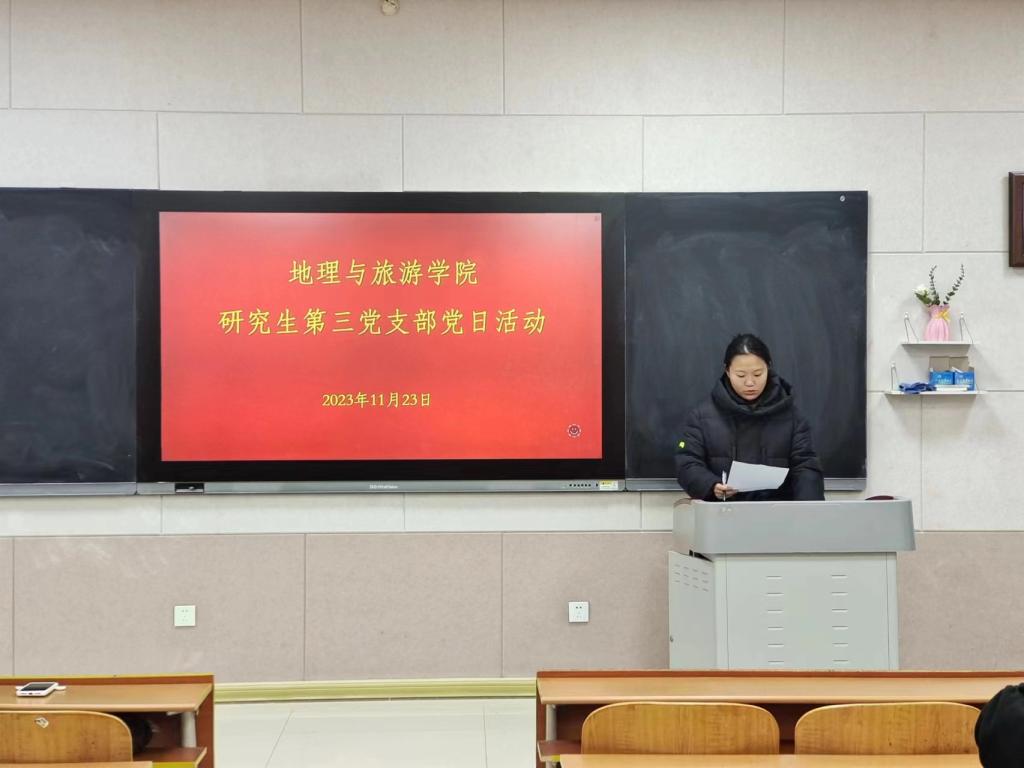 研究生第三党支部在S206教室开展党日活动,共同学习习近平主席在第三届“一带一路”国际合作高峰论坛开幕式上发表的主旨演讲,会议由第三党支部书记徐佳蓓主持,研究生第三党支部全体党员参加会议。