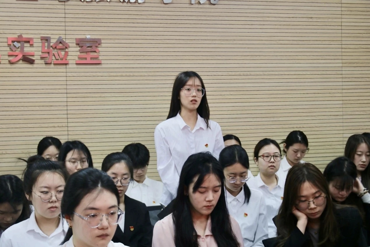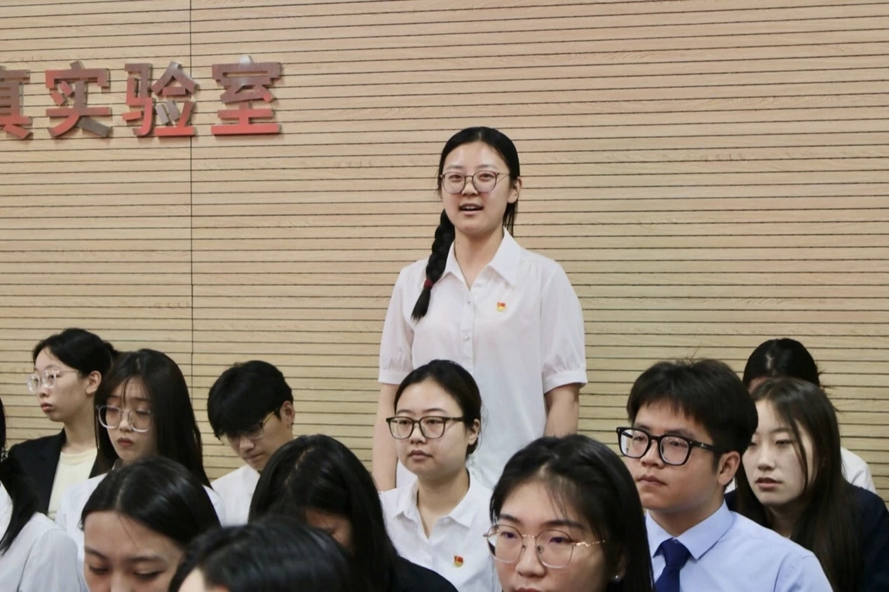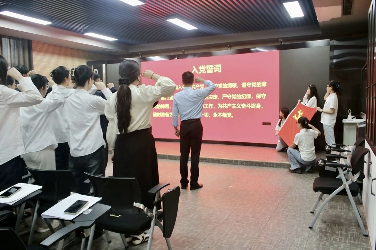 座谈会后,开展了重温一次入党誓词活动。全体党员面对鲜红党旗庄严宣誓:“我志愿加入中国共产党,拥护党的纲领,遵守党的章程,履行党员义务,执行党的决定,严守党的纪律,保守党的秘密,对党忠诚,积极工作,为共产主义奋斗终身,随时准备为党和人民牺牲一切,永不叛党。”这不仅是对初心的回望,更是勇担使命再出发。铮铮誓言激励毕业生党员无论投身科研、扎根基层还是服务社会,都要时刻以党员标准勇担时代重任,让青春在党和人民最需要的地方绽放光彩。