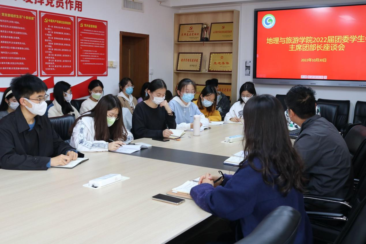 于会馆2401举办团委学生会主席团部长座谈会。会议由学院党委副书记刘伟主讲,2020级辅导员张乃宁参加活动。
