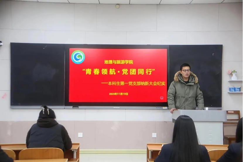 为进一步加强基层党组织建设,强化党团协同育人实效,11月19日,地理与旅游学院召开“青春领航·党团同行”本科生第一党支部纳新大会。会议由党支部书记田青主持,学院党委副书记刘伟,学院团委书记、党支部组织委员李梅,党支部宣传委员董青出席,全体党员和入党积极分子参加。
