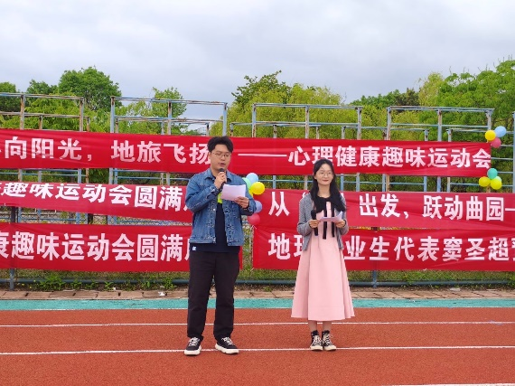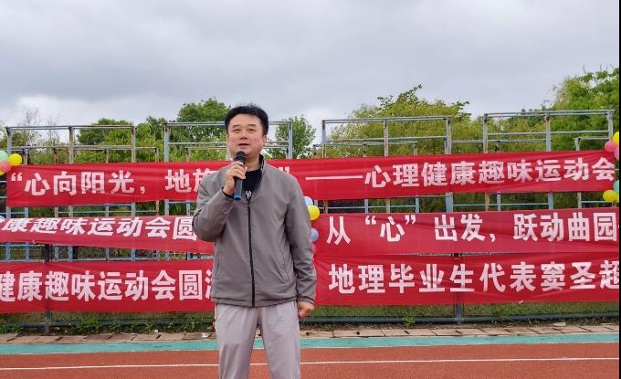 本次心理健康趣味运动会由学院工会与研究生会联合举办,有地理科学教研室、旅游管理教研室、人文地理教研室、土地管理教研室、行政地信代表队和自然地理教研室等6支队伍参加。运动会在活力四射的开场舞中拉开帷幕,本科生舞蹈队青春洋溢的表演瞬间点燃全场热情。