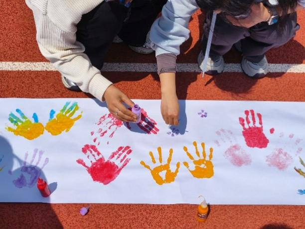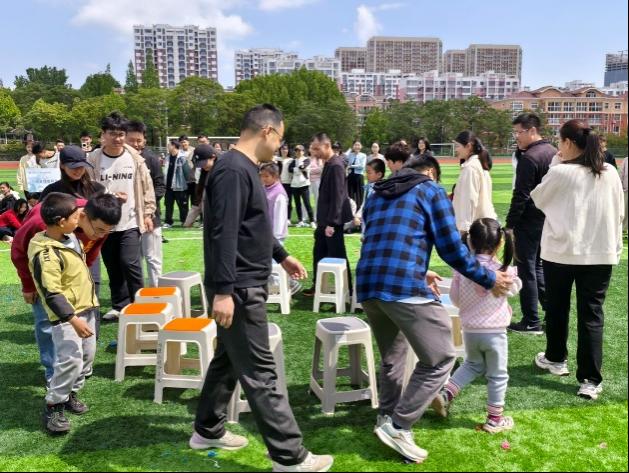 运动会首先进行热场游戏——“爱的抱抱”以轻松活泼的形式拉近了师生距离,为后续比赛注入满满活力。