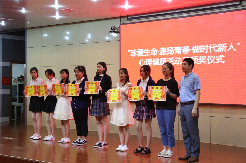 荣获心理知识竞赛一等奖、手语操比赛三等奖,余书涵、王慧荣获心理演讲比赛一等奖,李颖、孙晓雯分别荣获心理漫画评选二、三等奖。