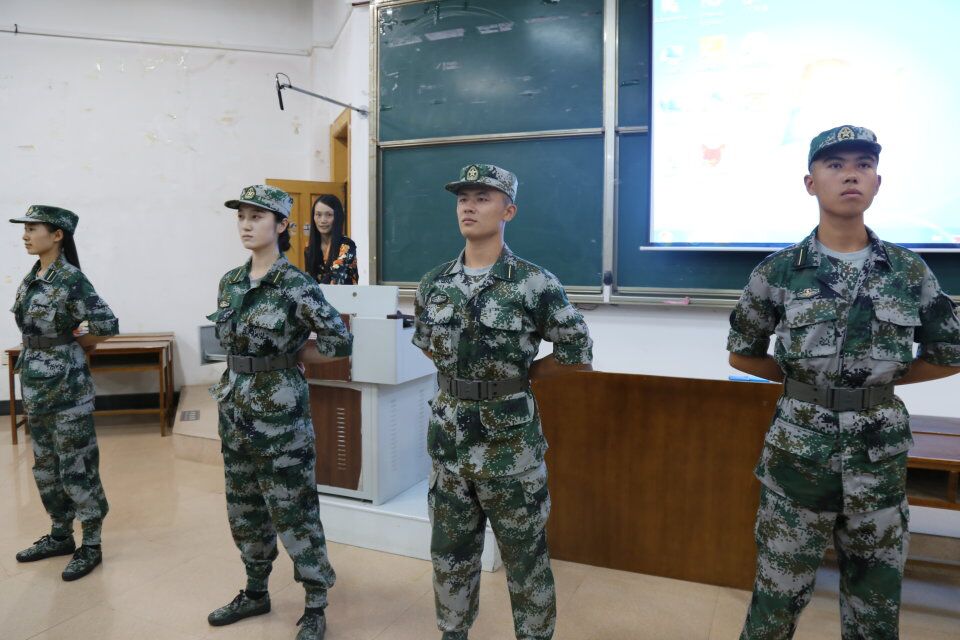 2018级新生良好的精神风貌。随后,军训教官代表向新生们讲解军训的要求以及注意事项,并带领新生前往军训场地参观。