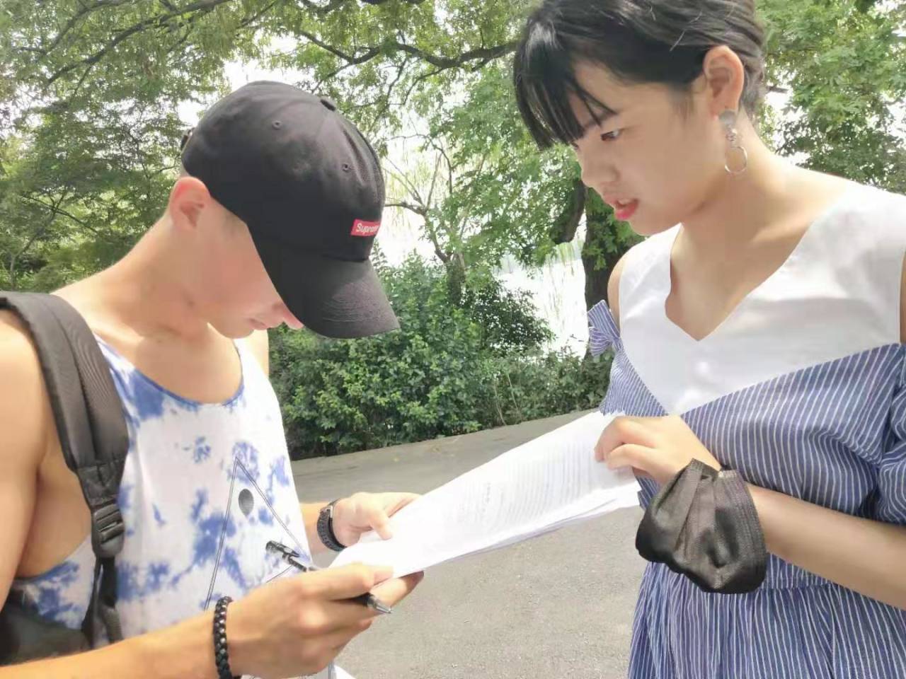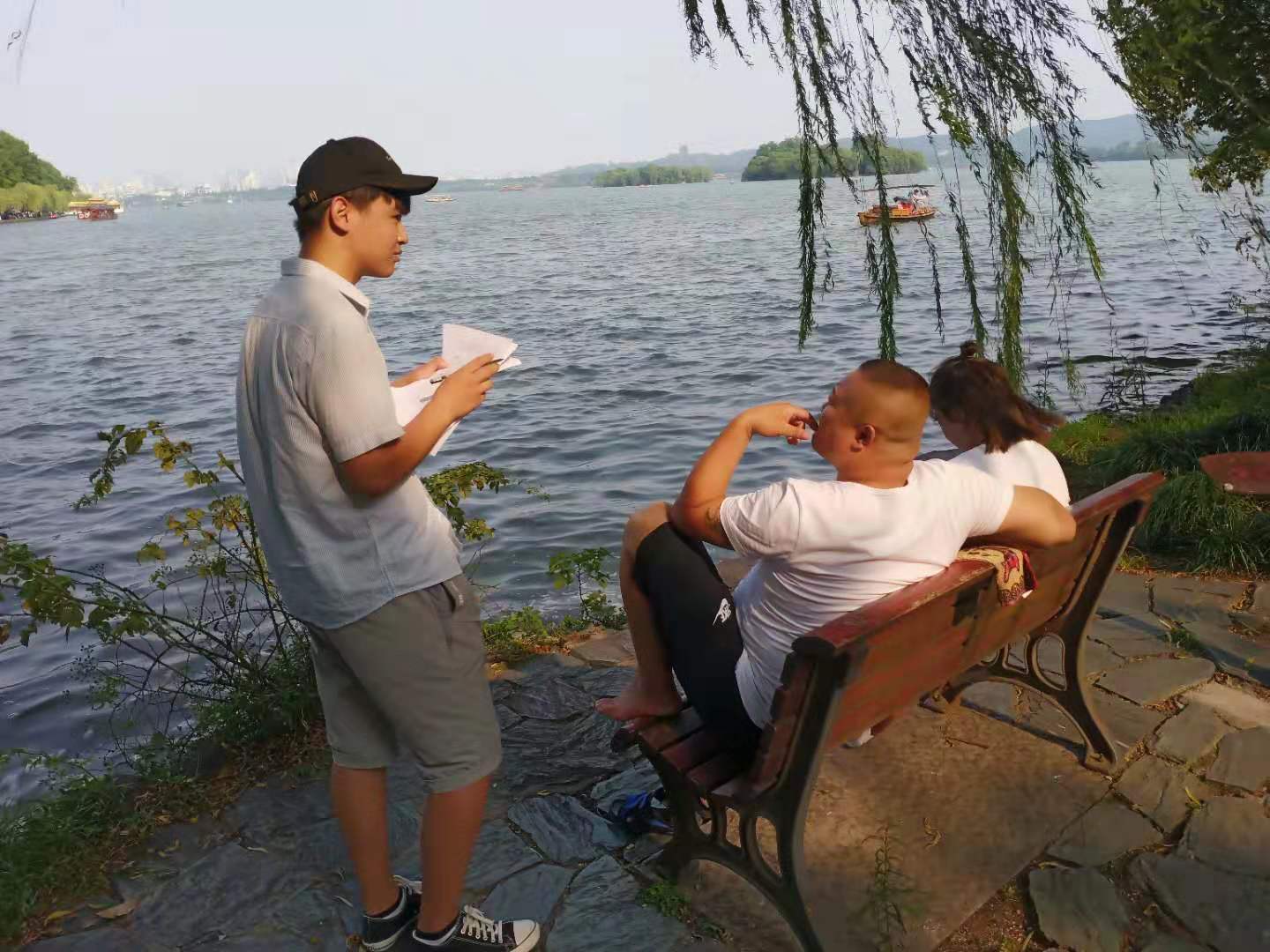 在乌镇东栅景区,对古镇开发的旅游影响进行了访谈调查,尽管天气炎热但丝毫没有影响到老师和同学们的工作学习热情。