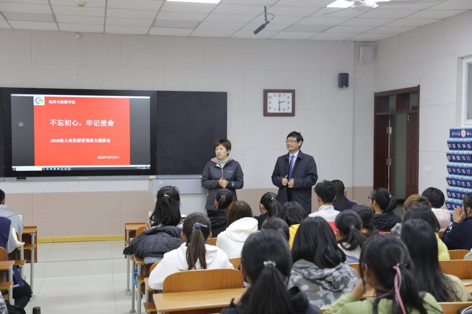 为加强老师与同学的交流沟通,增强班级凝聚力。10月25日,2019级土地资源管理班于S202召开“不忘初心、牢记使命”主题班会。院长张全景、2019级土地资源管理班班主任马运佳应邀出席会议,2019级辅导员李梅主持会议,2019级土地资源管理班全体成员参加。