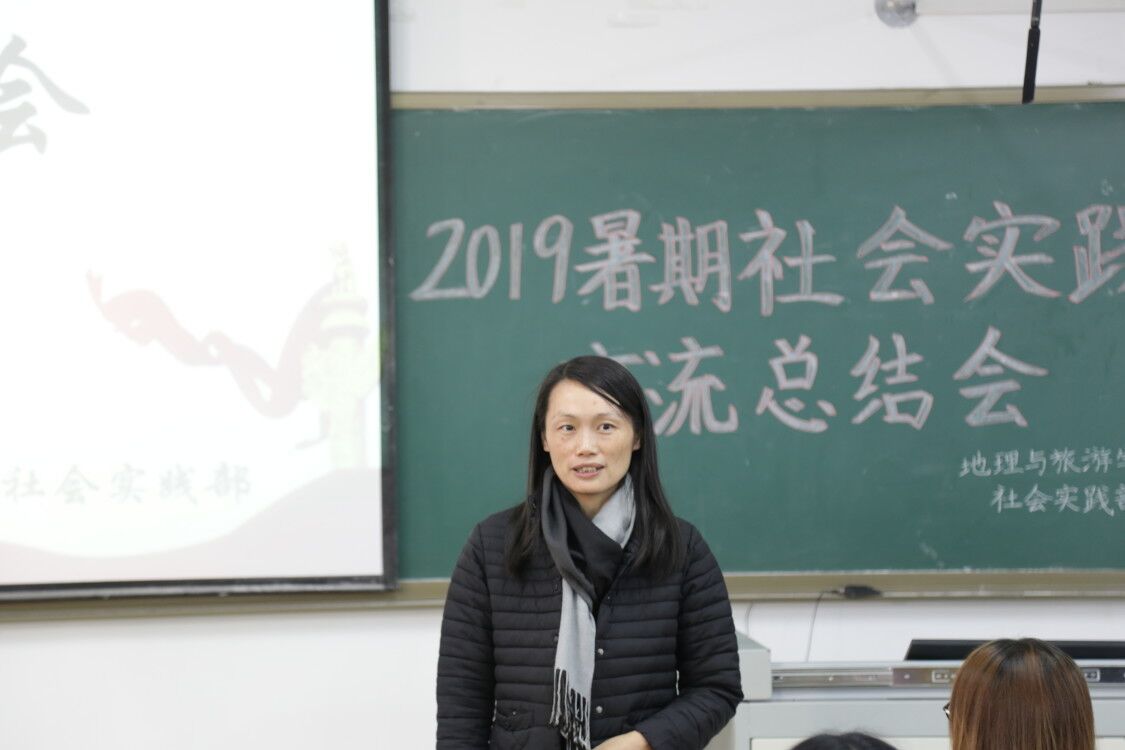 在社会实践活动中继续保持优秀的姿态,展现地理学子的独特魅力。随后,社会实践部部长宗宇对2019年暑期社会实践进行成果总结,她希望同学们将实践成果巩固,直面问题,解决问题,并预祝2020年寒假社会实践再创佳绩。