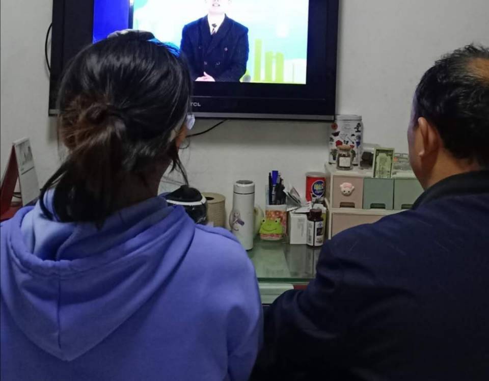 组织学生与家长共同观看山东教育电视台策划制作的《开学第一课》山东省战疫特别节目。