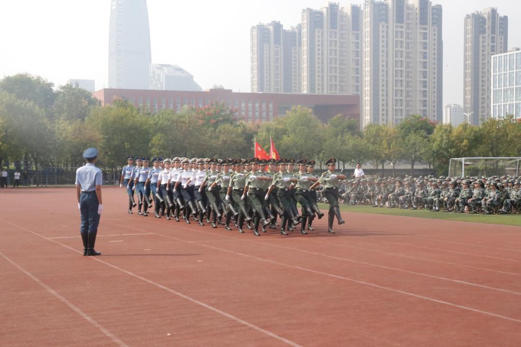 大会在雄壮的国歌声中拉开帷幕。全体人员面向国旗,高唱国歌,庄严肃穆,激情澎湃。学校领导扈庆学、宋国栋宣读军训期间总指导,并希望各位同学在自身条件允许的情况下,认真完成大学中的第一步。